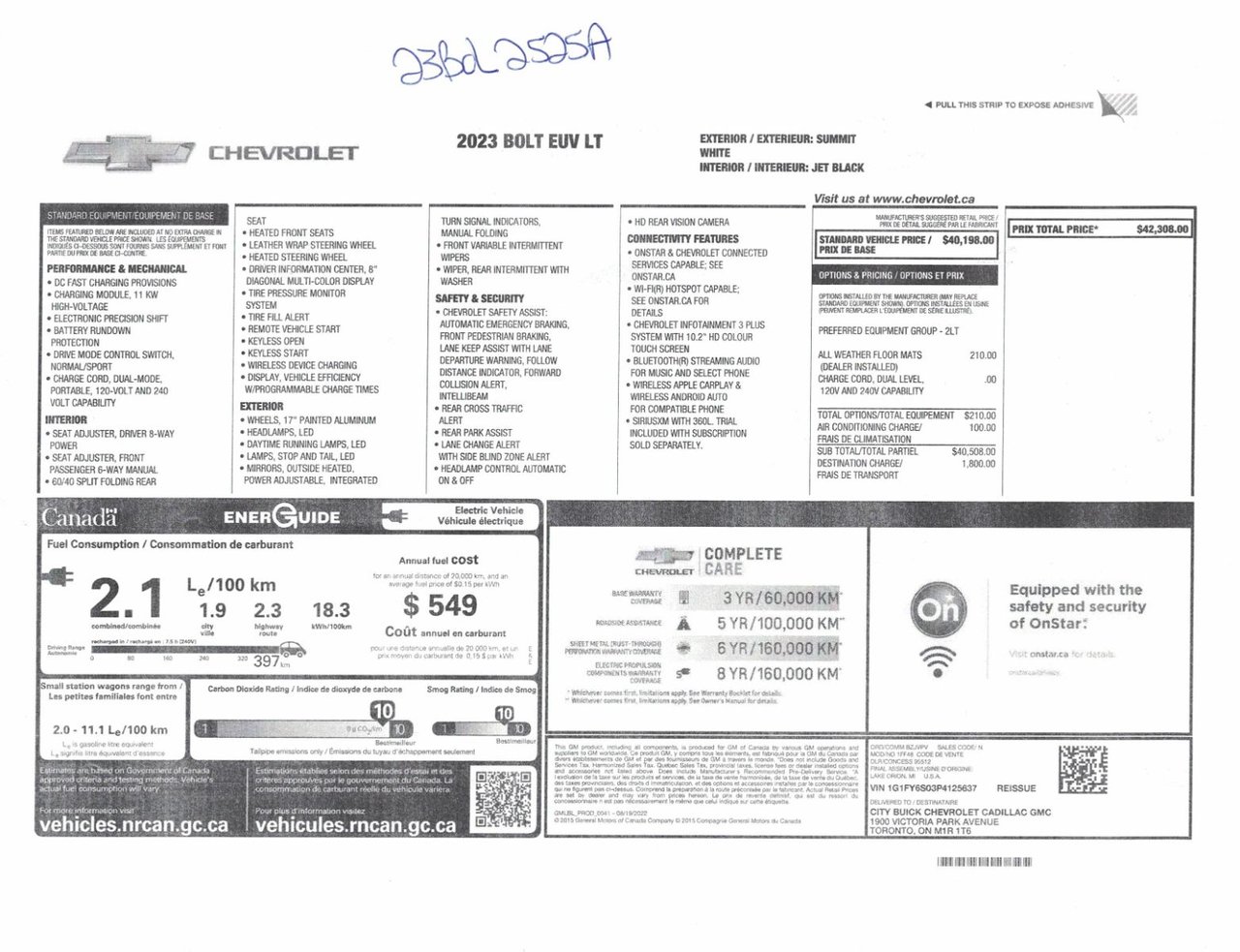 Nous pouvons vous aider à emprunter pour l’achat du Chevrolet BOLT EUV 2023 à des taux d’intérêt fort avantageux selon votre situation financière.