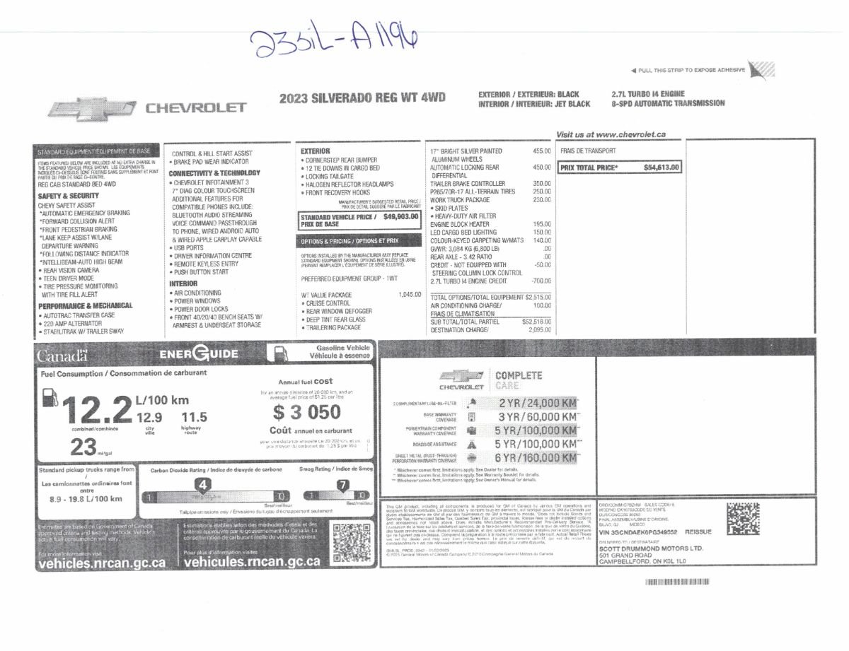Nous pouvons vous aider à emprunter pour l’achat du Chevrolet Silverado 1500 2023 à des taux d’intérêt fort avantageux selon votre situation financière.