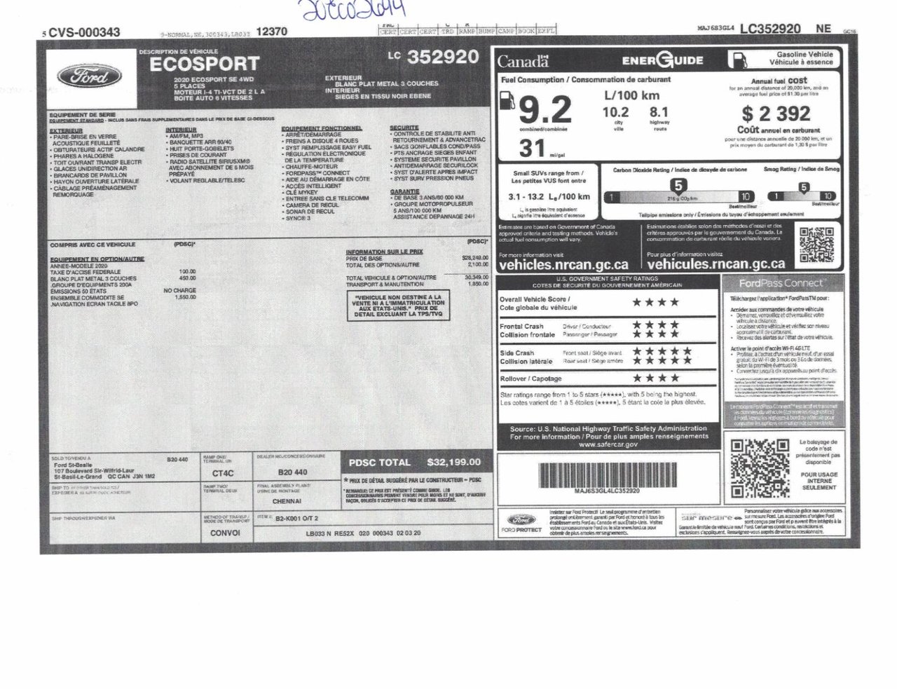 Nous pouvons vous aider à emprunter pour l’achat du Ford EcoSport 2020 à des taux d’intérêt fort avantageux selon votre situation financière.