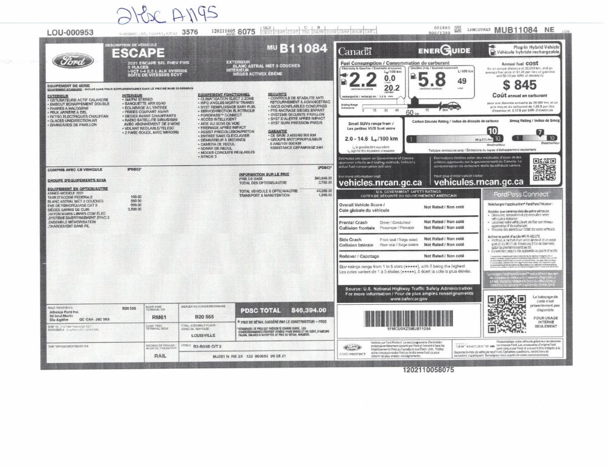 Nous pouvons vous aider à emprunter pour l’achat du Ford Escape 2021 à des taux d’intérêt fort avantageux selon votre situation financière.
