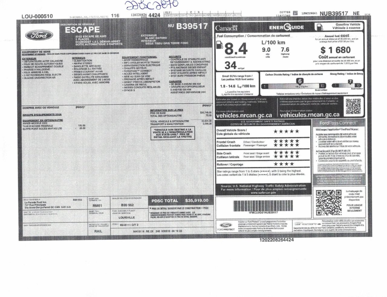 Nous pouvons vous aider à emprunter pour l’achat du Ford Escape 2022 à des taux d’intérêt fort avantageux selon votre situation financière.