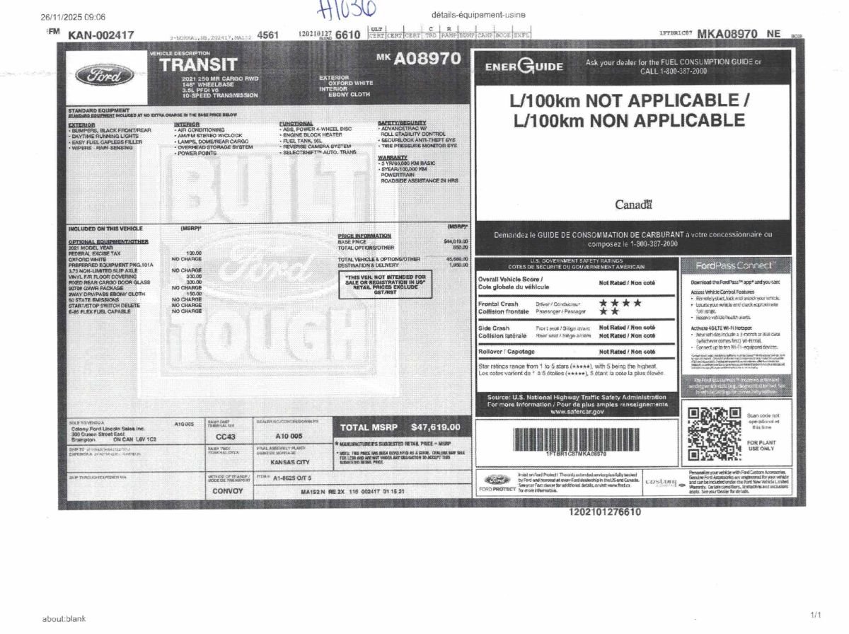 Obtenez un financement pour votre Ford Transit Cargo Van 2021 grâce à notre accompagnement et notre suivi tout au long de votre prêt.