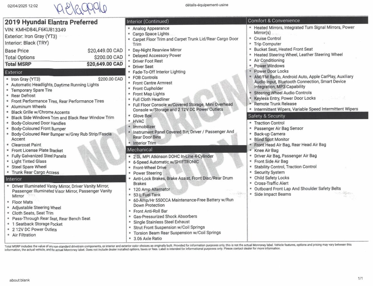 Nous pouvons vous aider à emprunter pour l’achat du Hyundai Elantra 2019 à des taux d’intérêt fort avantageux selon votre situation financière.