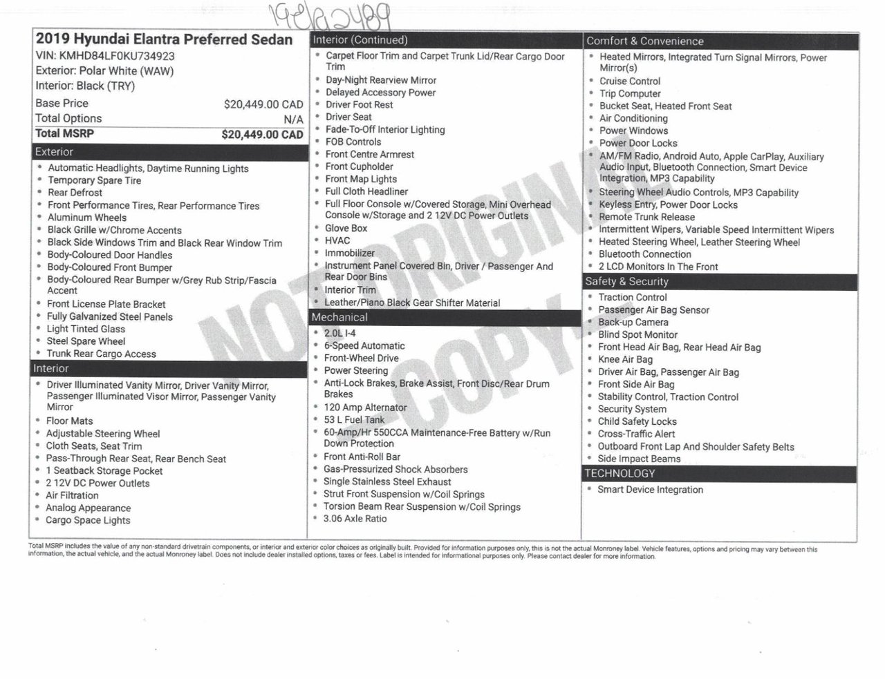 Nous pouvons vous aider à emprunter pour l’achat du Hyundai Elantra 2019 à des taux d’intérêt fort avantageux selon votre situation financière.