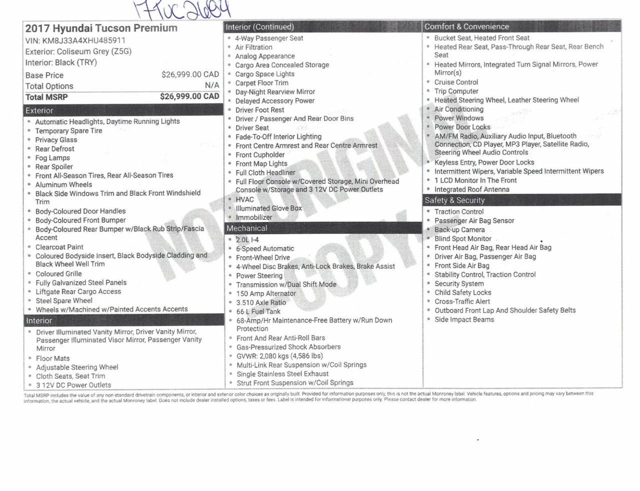 Nous pouvons vous aider à emprunter pour l’achat du Hyundai Tucson 2017 à des taux d’intérêt fort avantageux selon votre situation financière.
