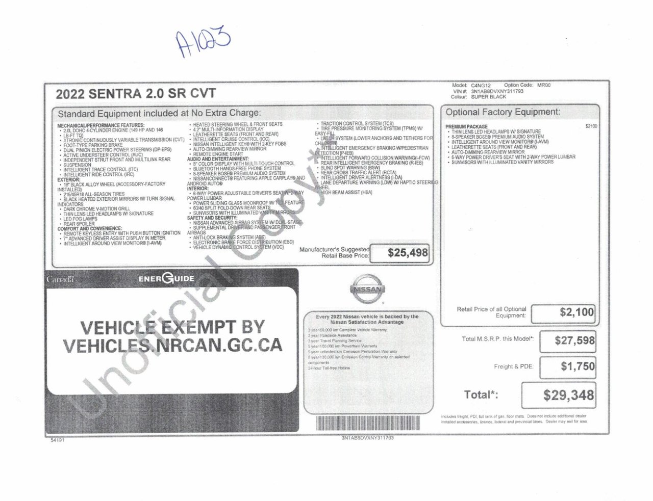 Nous pouvons vous aider à emprunter pour l’achat du Nissan Sentra 2022 à des taux d’intérêt fort avantageux selon votre situation financière.