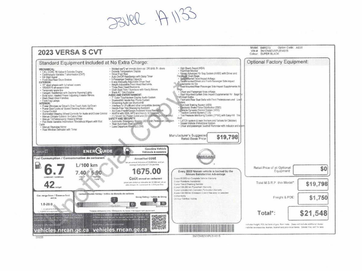 Nous pouvons vous aider à emprunter pour l’achat du Nissan Versa 2023 à des taux d’intérêt fort avantageux selon votre situation financière.