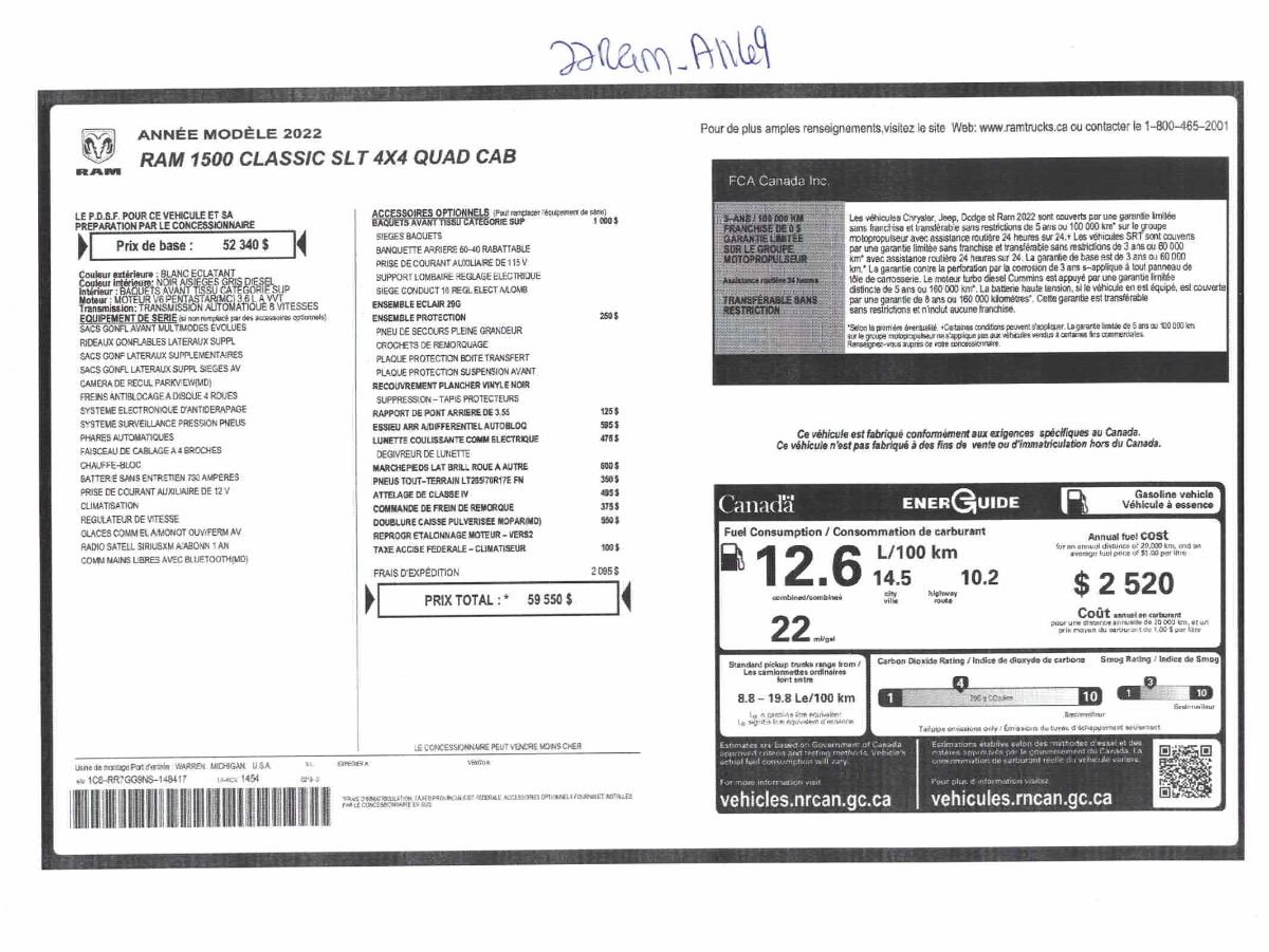 Nous pouvons vous aider à emprunter pour l’achat du Ram 1500 Classic 2022 à des taux d’intérêt fort avantageux selon votre situation financière.